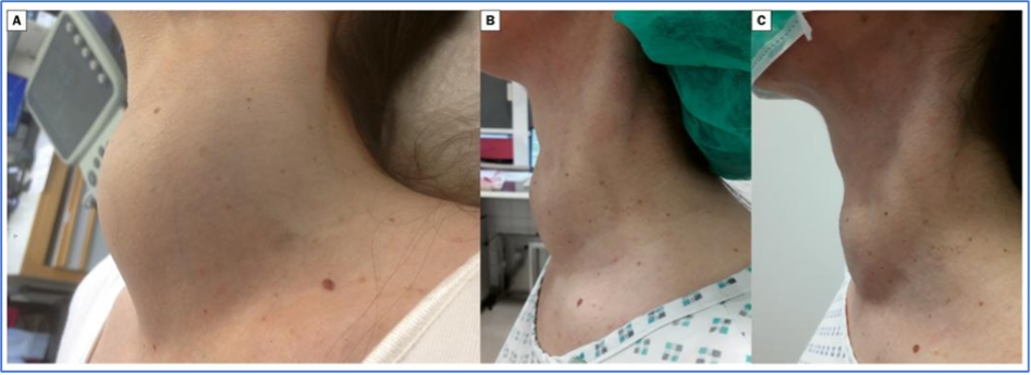 Сегодня для Авроры (10 лет) был особенный день. С двухлетнего возраста у нее был узел щитовидной железы, который неуклонно увеличивается в размерах (текущий размер: 130 мл!). Аврора хочет, чтобы узел уменьшился без ущерба для функции щитовидной железы. Перед процедурой Аврора немного нервничала, но она очень смелая девочка, согласившись на вмешательство под местной анестезией. В нашем центре лечатся и дети.