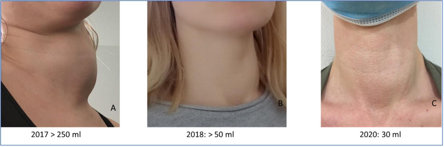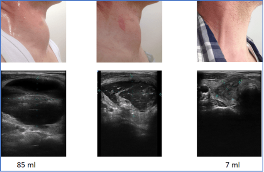 Очень хорошие результаты. Узлы становятся меньше почти на 50 % в течение 3 месяцев. В некоторых случаях узлы практически исчезают. Непревзойденный косметический результат!