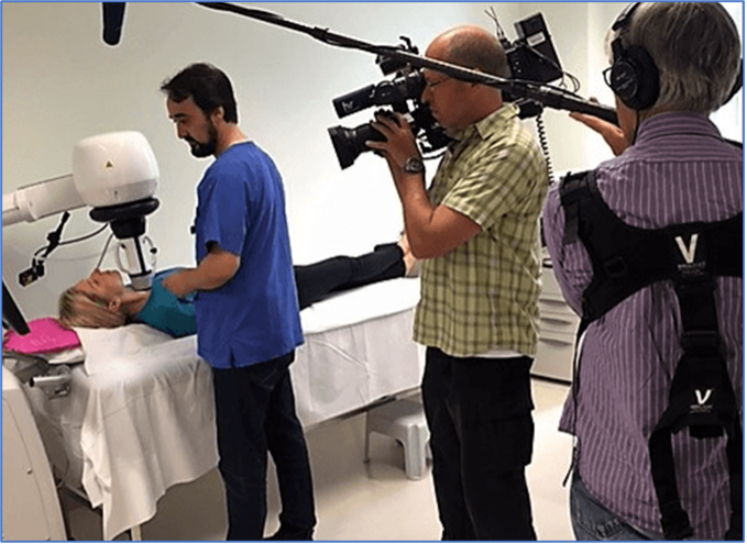 Телевизионная группа сопровождает профессора Коркусуза во время выполнения неинвазивной процедуры (HIFU).