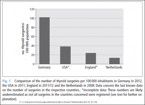 • In Deutschland gibt es jährlich dreimal so viele Schilddrüsen-OPs im Vergleich zu den USA.